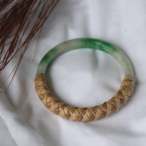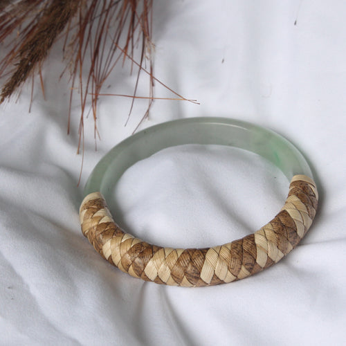 AlohilaniKinemea X Lovellysea Lauhala Wrapped THICK Jade Bangle